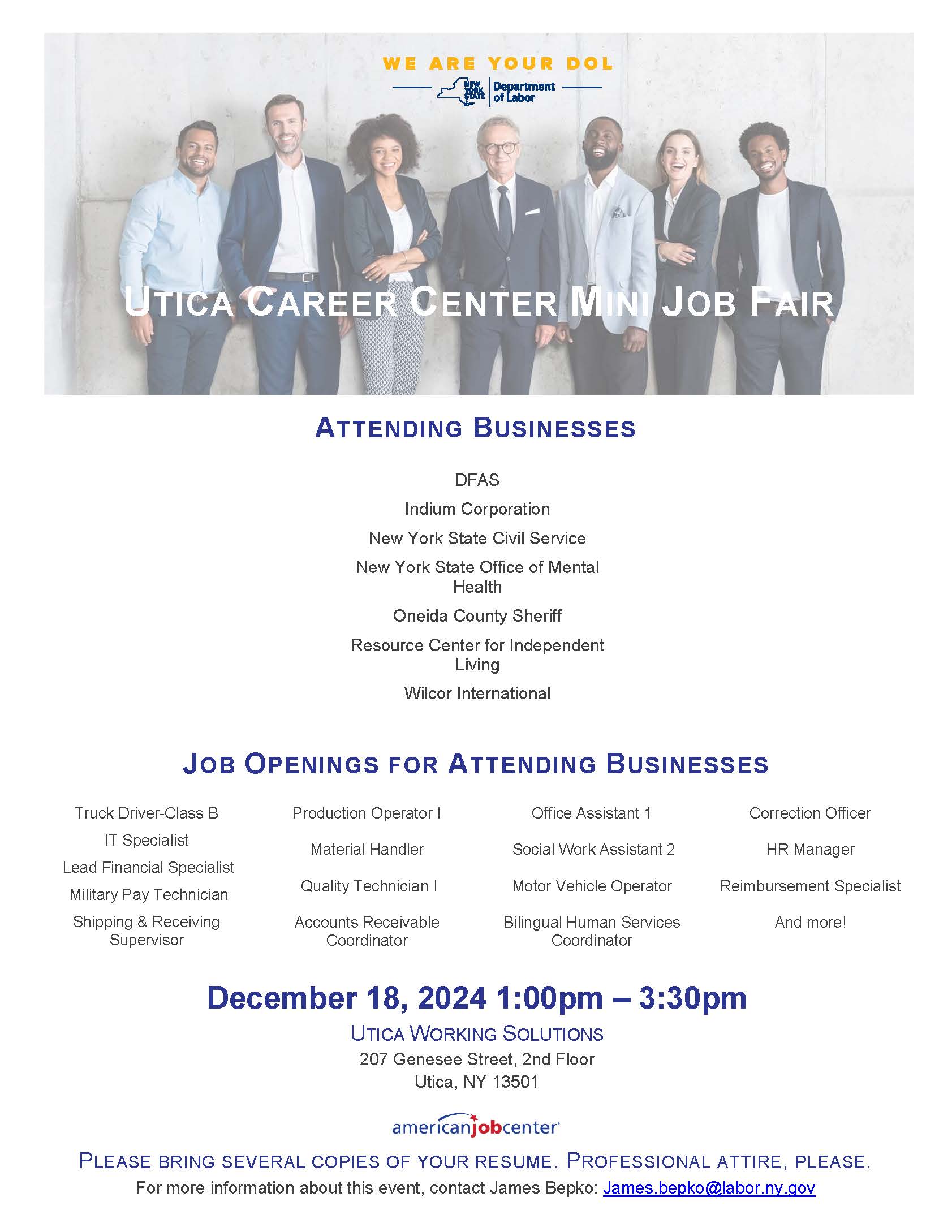 Where: Utica Career Center in the State Office Building, 207 Genesee Street, 2nd floor, Utica, NY 13501.